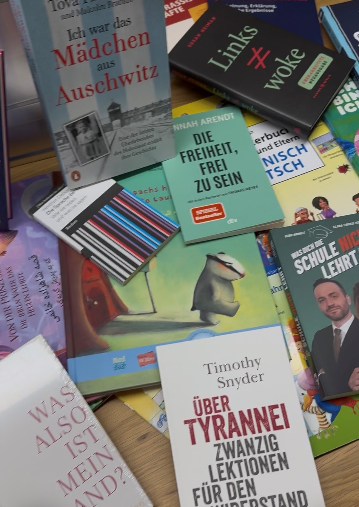 Sie sind vollgepackt mit Büchern rund um Demokratie, gesellschaftliches Miteinander, politische Bildung, Prävention und Haltung – mal niederschwellig, mal vertiefend, mal zum gemeinsamen Lesen und Diskutieren, mal zum Weiterdenken.